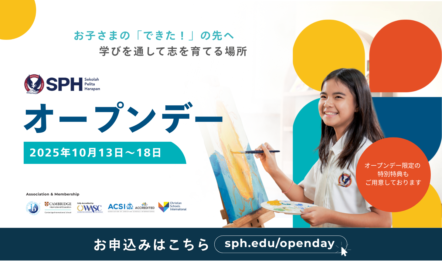 すべての保護者が願うのは、子どもが健やかに成長し、自信を持って未来へ羽ばたいていくこと。だからこそ、お子様に合った最適な学校選びはとても大切です。SPH(Sekolah Pelita Harapan)では、「学ぶ力」だけでなく「生きる力」も育みます。信仰を大切に、人としての成長を育み、ベストを尽くす力を伸ばす。子ども一人ひとりの“生きる土台”をつくる教育です。