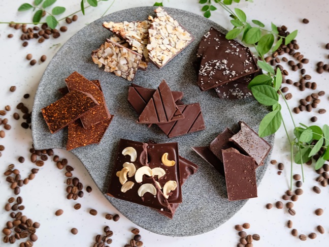 スマトラ、ジャワ、スラウェシなど、さまざまな産地の上質なインドネシア産カカオを使用したビーントゥバー・チョコレートを販売します。
