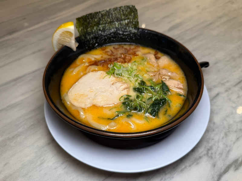 Rp.105,000++今年5月にグランドオープン。ブレンダーでクリーミーに仕上げた鶏100%の超濃厚なスープを、特注のもっちり中太麺にたっぷり絡めて味わう。焼き目をつけた香ばしいもも肉と、しっとり柔らかな胸肉の2種類のチャーシューを合間に頬張れば、食感と味わいの違いを楽しめる。鶏白湯の奥深さに、きっと驚かされるはずだ。