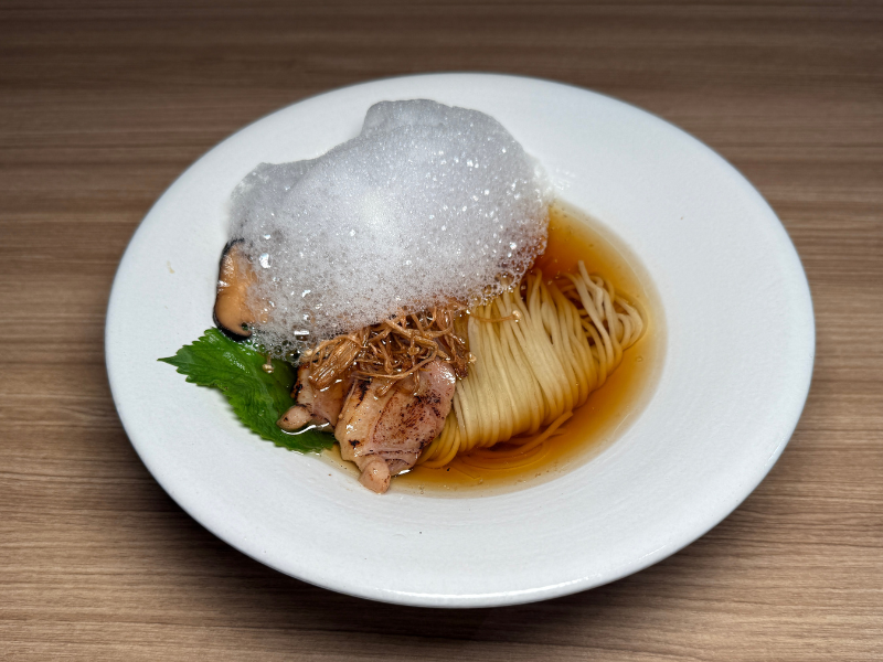 Rp.99,000自家製麺に、鰹出汁を利かせた塩ダレスープを合わせ、香味油と柚子エキュームを添えた一杯。鴨のコンフィや素揚げエノキとエリンギなど最小限の具材で、食材の組み合わせを際立たせている。整った麺線とクリアなスープが生む静かな緊張感に、香りと旨みの変化も重なり、和食としての完成度が際立つ「引き算のラーメン」。