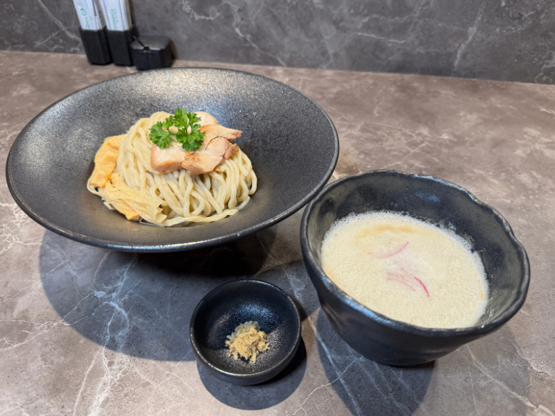 Rp.118,000→108,000昆布水の旨みをまとわせた麺を、魚介豚骨ベースの濃厚なつけ汁に絡めて味わう一杯。黒マー油と焦がしニンニクが香ばしさを添え、深いコクを引き出す。チャーシューには脂に甘みのある低温調理の豚肉を使用し、しっとりとした口あたりと、ほどよい肉の旨みが両立。トッピングが香りを重ね、全体に厚みを与えている。