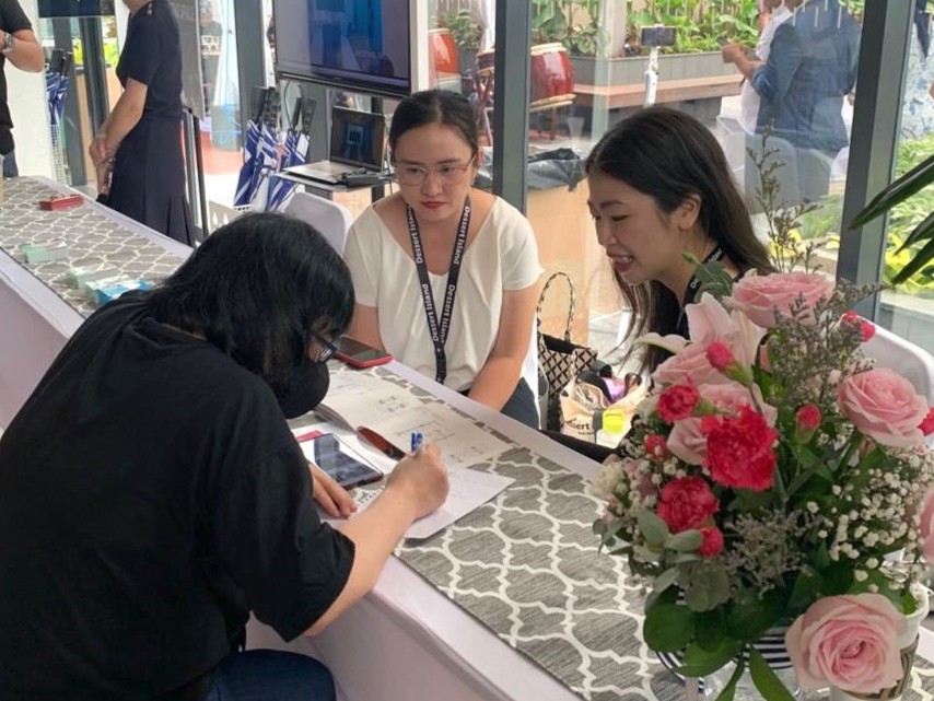 竣工前イベントでは、デザートアイランド代表の鐘ヶ江氏が登壇し、スピーチを行いました。竣工後イベントではブースを設置し、入居者や入居希望者からのお悩みとご相談を一つひとつ一緒に解決しました。
