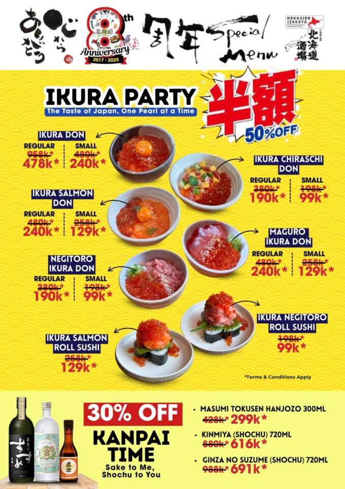 いくらちらし丼 (R)Rp,380,000 → Rp.190,000 / (S)Rp.198,000 → Rp.99,000