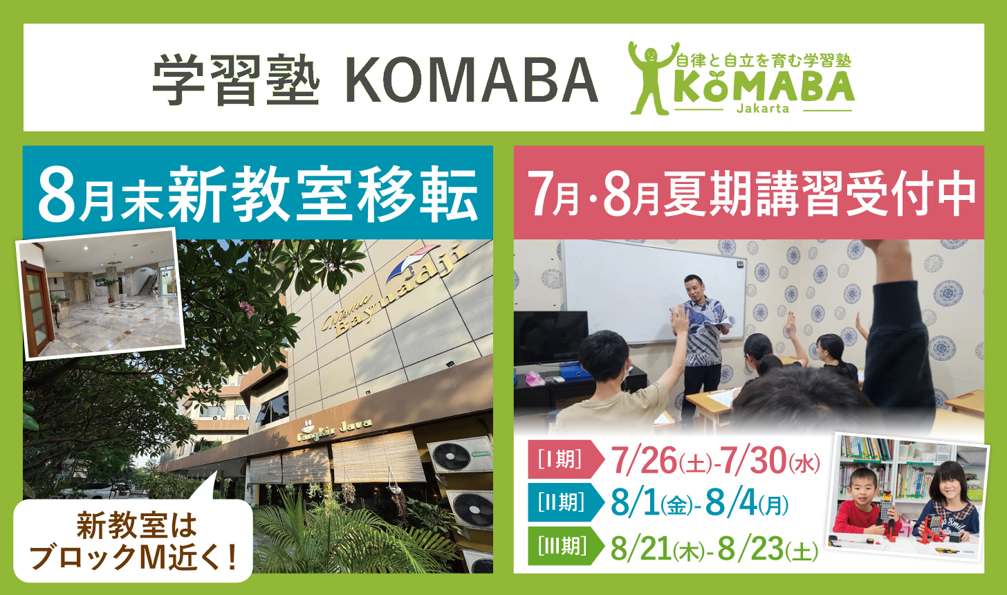 学習塾KOMABAは、「自立と自律を育む学習塾」として、ジャカルタに暮らすご家族を長年サポートしてきました。日本の教育カリキュラムに準拠した授業と、個別に寄り添う指導で、生徒一人ひとりの成長を応援しています。