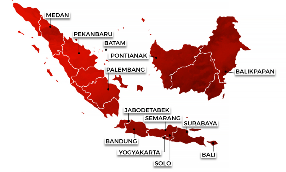 現在、MOOYAMはTokopediaやShoppeeなどECサイトで販売中。ジャボデタベック(Jabodetabek)を中心に、以下の都市でも配送を実施している。