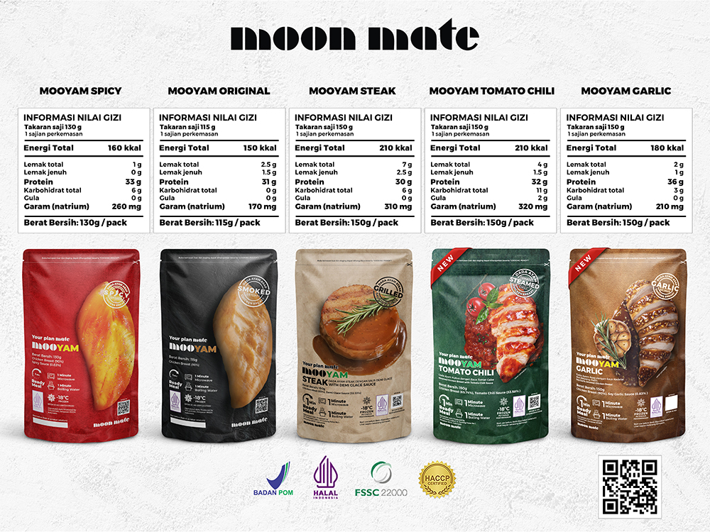 「Moon Mate」は、“Proudly Made in Indonesia, with Quality(誇りを込めて、インドネシアから。品質とともに)”をスローガンに掲げる新鋭のインドネシア発フードブランド。名前に込められた「Moon(月)」は成長や挑戦、「Mate(仲間)」は健康やウェルネスを支えるパートナーとしての意志を象徴している。