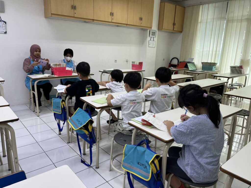 プルマタスナヤンのルコ内にある「公文式 ジャカルタ日本人教室」は、3歳から大人まで通える学習教室。最大の特徴は、「一人ひとりのペースに合わせた個別学習」であること。子どもの理解度や進度に合わせてプリントが出され、自学自習の力を育てるという、まさに公文式の王道スタイルが採用されている。