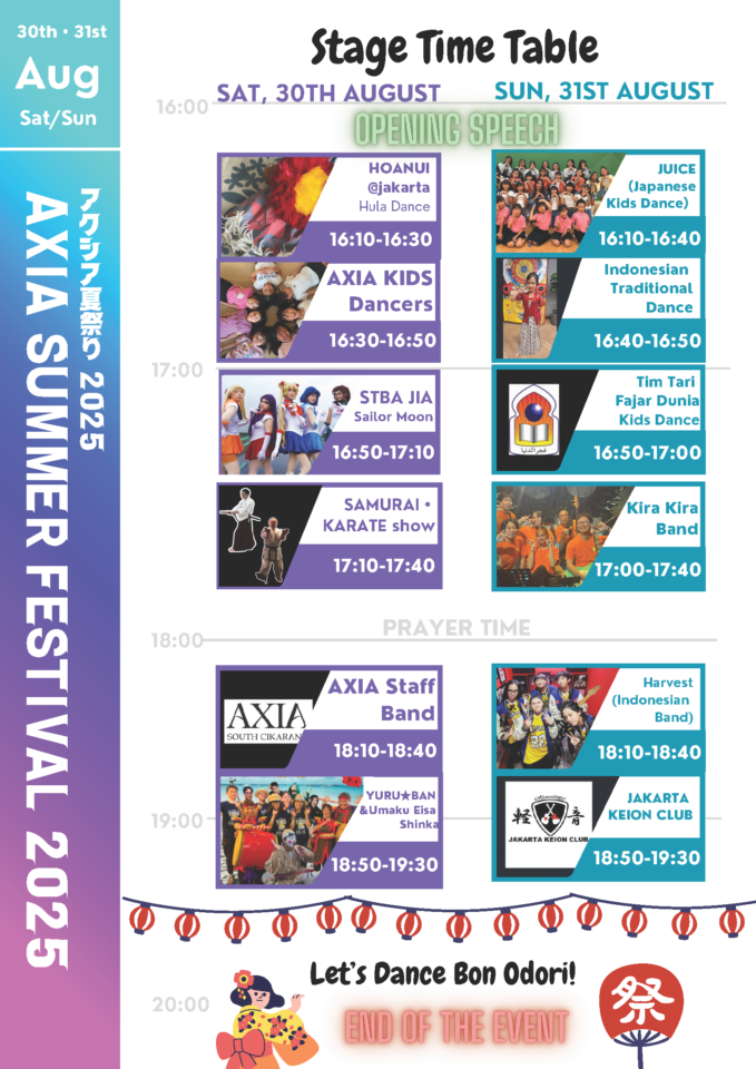 和太鼓、エイサー、ダンス、バンド演奏など、インドネシアと日本の魅力が融合したステージは必見です!👀ラストは、みんなで盆踊りを楽しみましょう!