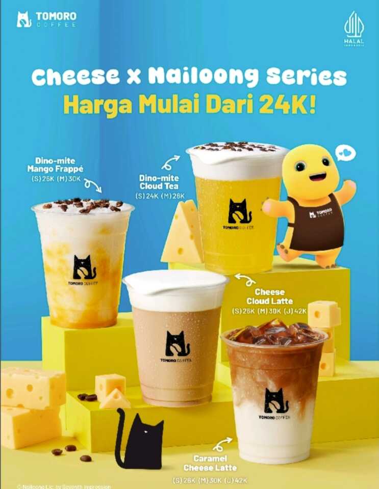 「Tomoro Coffee」では、「Cheese x Nailoong」シリーズが全店舗で販売中。さまざまなドリンクに濃厚なチーズフォームを組み合わせ、ユニークでリッチな味わいが楽しめる。メニューは、「Dino-mite Mango Frappe」、「Dino-mite Cloud Tea」、「Cheese Cloud Latte」、「Caramel Cheese Latte」の4種類。