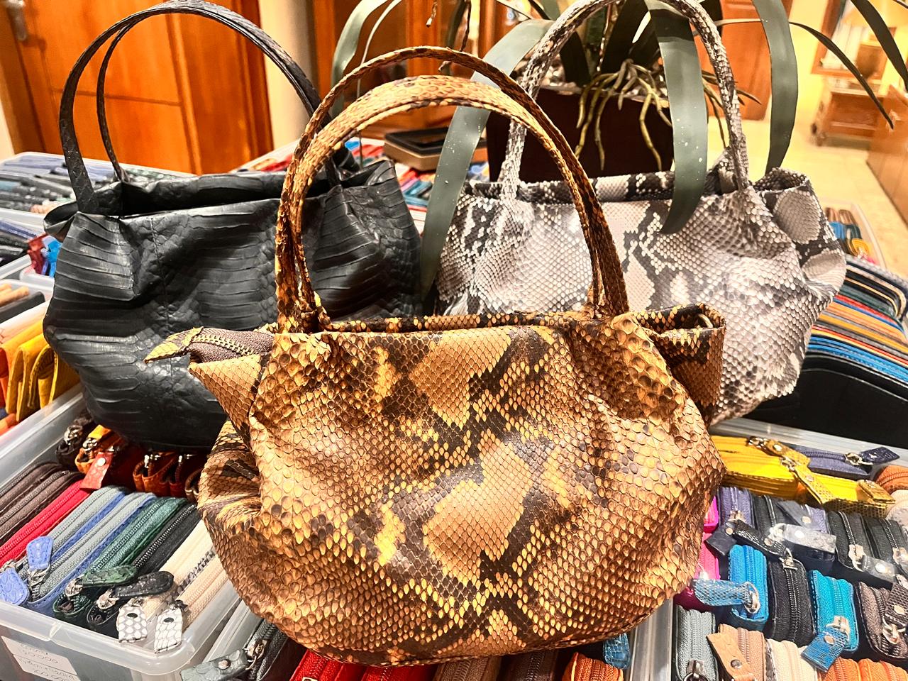 ヘビ革や、ワニ革、トカゲ革素材の女性用バッグ、財布、ベルト、靴などを製造している「アジルー」。個人用としても小売用としても購入可能。ライフネシアの読者は9月30日まで5%OFF。