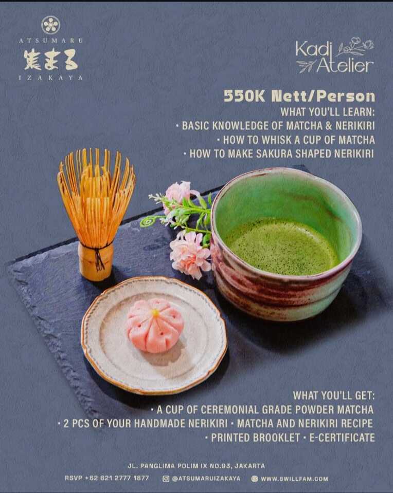 「Kadi Atelier」とのコラボで、抹茶の基礎知識と桜の練り切りの作り方が学べる特別なワークショップを開催。練り切り2個に抹茶、レシピをお持ち帰りいただけるほか特典がつく。1セッション6名様まで。