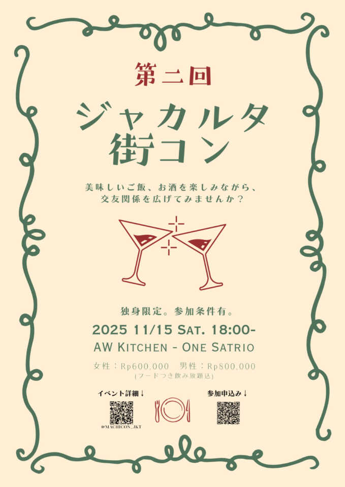食事やお酒を楽しみながらカジュアルに楽しめるイベントを開催する。申込はQRコードから。