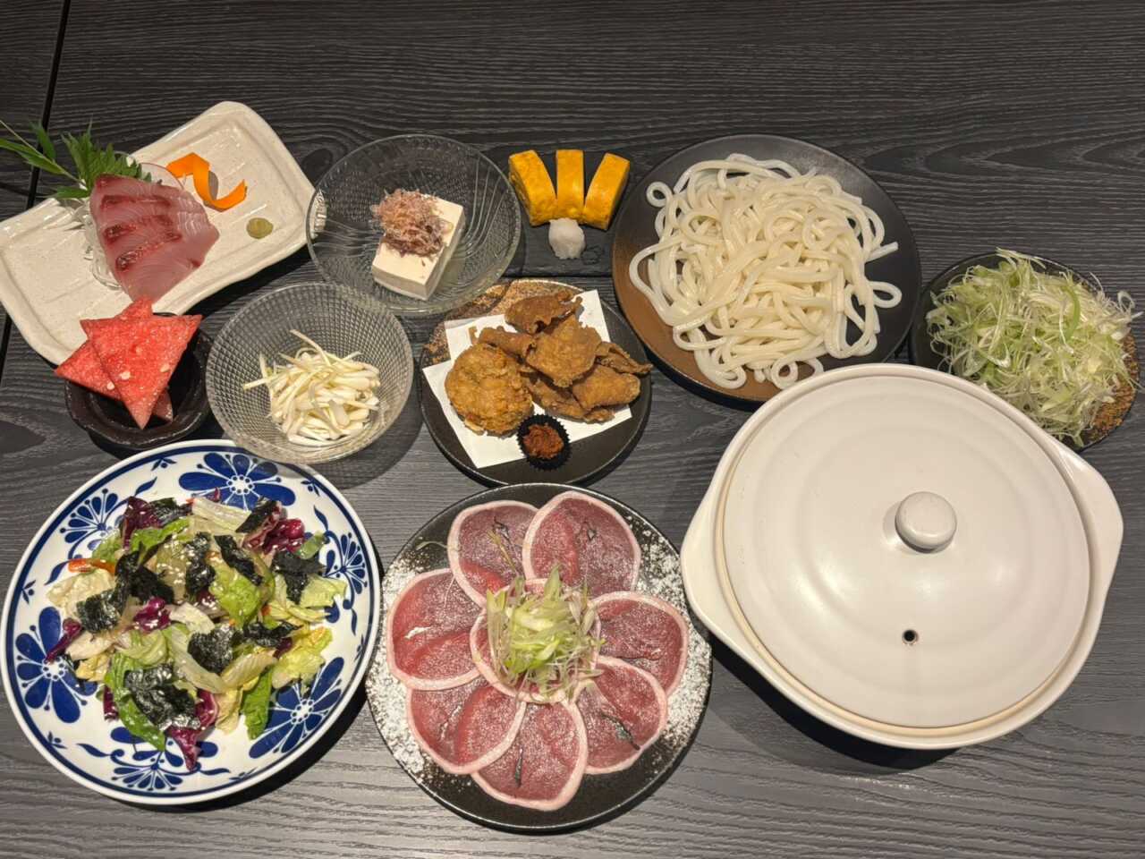 | おすすめ会食メニュー | 海鮮うどんすき・天ぷら盛り合わせ |