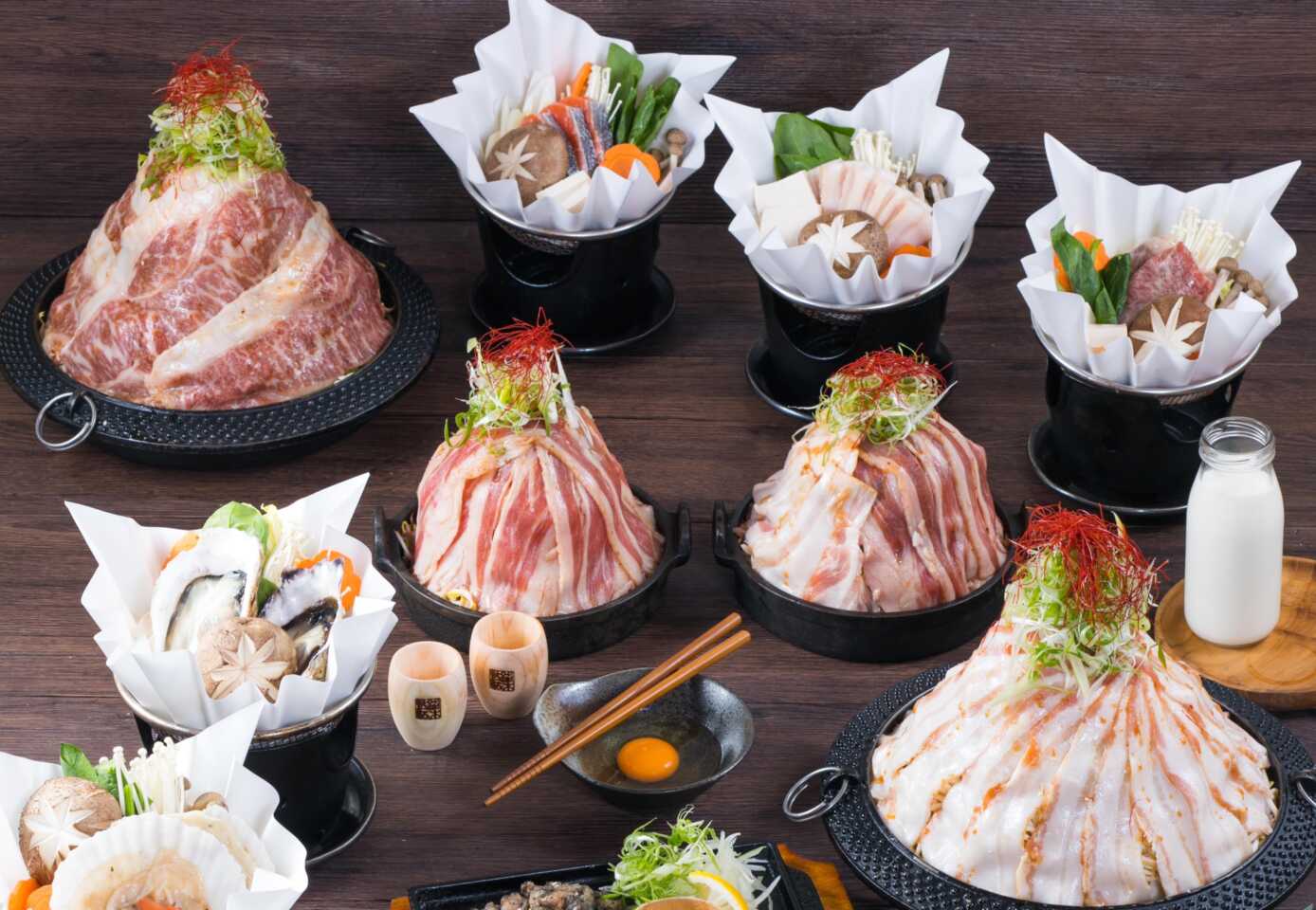 | おすすめ会食メニュー | サーモンミルク味噌鍋・MEAT MOUNTAIN SPICY HOT POT(通常 / 黒豚 / 和牛) |