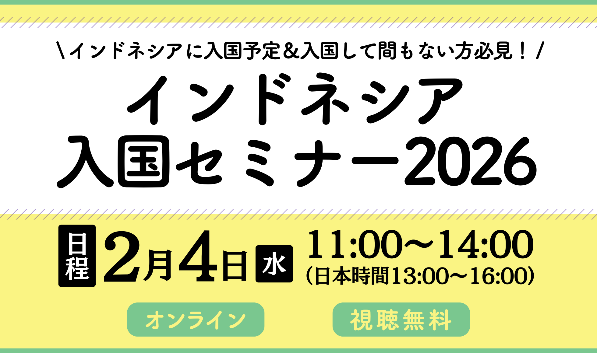 2026年2月4日(水) インドネシア時間11:00~14:00 (日本時間)13:00~16:00 |