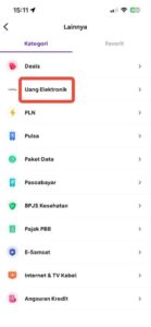 3, 「Uang Elektronik」を選択します
