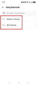 4, 「Mandiri e-Money」もしくは「BNI TapCash」を選択します