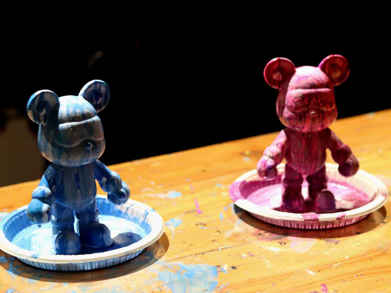 人気なのは、好きな色やスタイルを選び、世界に1つだけのデザインを仕上げられる「Bearbrick Art」や、絵の具を大胆に飛ばしながらダイナミックな作品を生み出す「Splatter Art Jamming」。