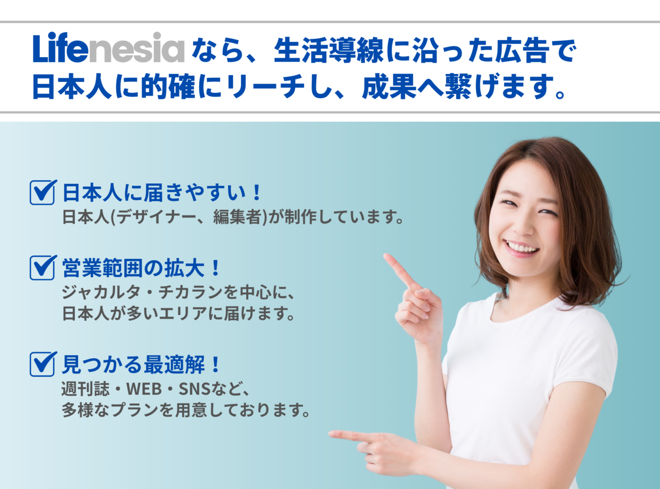 日系企業の駐在員や管理職の方々は、取引や購買の判断で日本語メディアを活用されていることが多く、日本企業にとってインドネシアの日本人マーケットは、将来性あるローカルマーケットへの入口となっています。